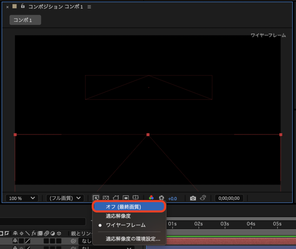 右上に「ワイヤーフレーム」とパネルに表示されていませんか?